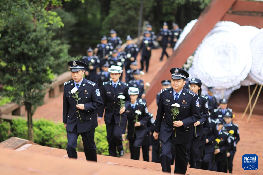 4月2日,在貴州省赤水市紅軍烈士陵園,民警列隊向紅軍烈士墓獻花。