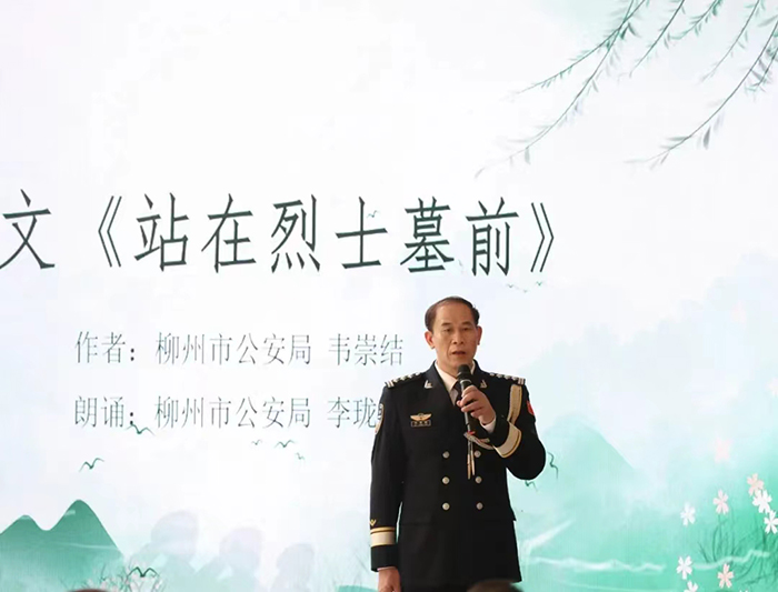“群山肅穆,蒼松挺立,那一排排青灰的墓碑,在清明期間難得一見的陽光中閃著金色的光,數千名烈士安靜地長眠在這里……”清明至,柳州市公安局民警韋崇結創(chuàng)作的散文《站在烈士墓前》,深切懷念昔日英勇犧牲的戰(zhàn)友。韋崇結上臺分享創(chuàng)作感想時說,我們緬懷英烈,就是要繼承他們的遺志,從中汲取力量,繼續(xù)前行。