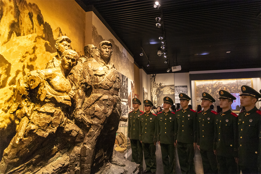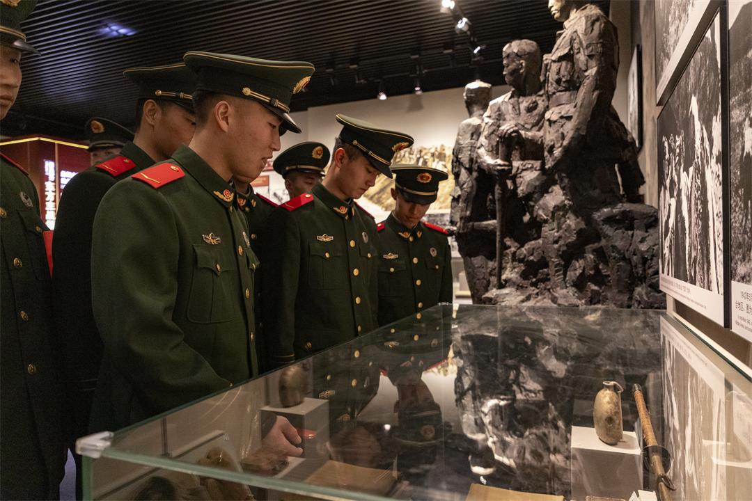 官兵們走進紀念館內(nèi),沿著歷史的年輪,循著先輩的足跡,不時在一件件歷史文物前駐足沉思。“我會牢記歷史,追隨先烈,奮勇前行……”“我們是新時代接力者”……官兵們在留言簿上寫下寄語。