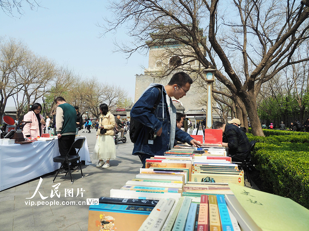 2024年4月5日,北京東城區(qū)首屆“舊書新知 鐘鼓書韻”文化市集在鐘鼓樓廣場舉辦。本次文化市集由東城區(qū)委宣傳部、北京發(fā)行集團主辦,于4月4日開集,共設(shè)攤位數(shù)十個,供廣大古舊書愛好者選購圖書。