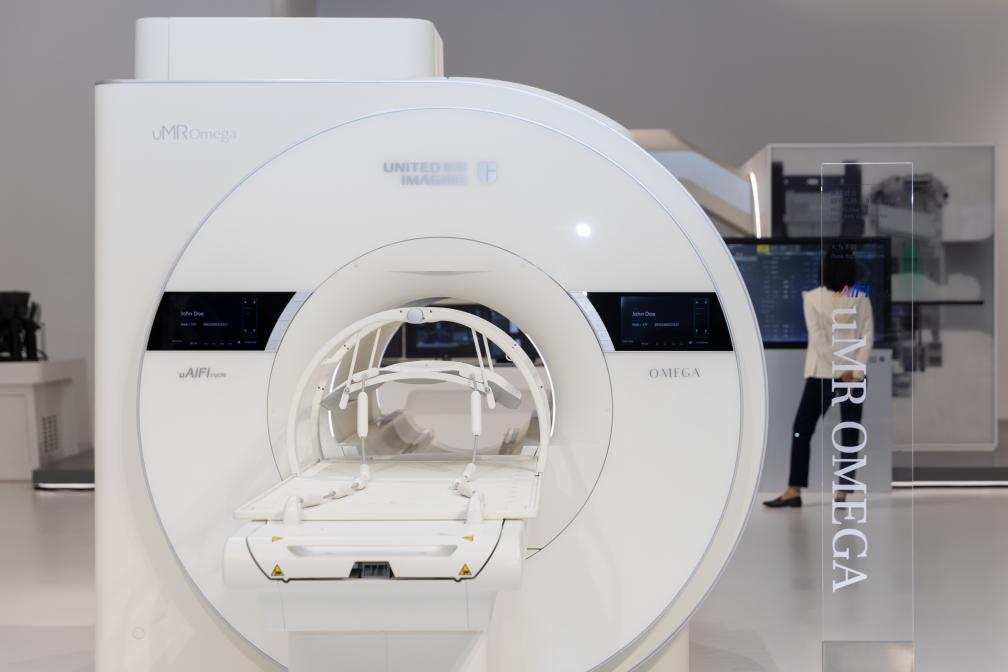 在位于上海市嘉定區(qū)的聯(lián)影集團(tuán)拍攝的75cm超大孔徑3.0T磁共振。新華社記者 王翔 攝(5月24日攝)
