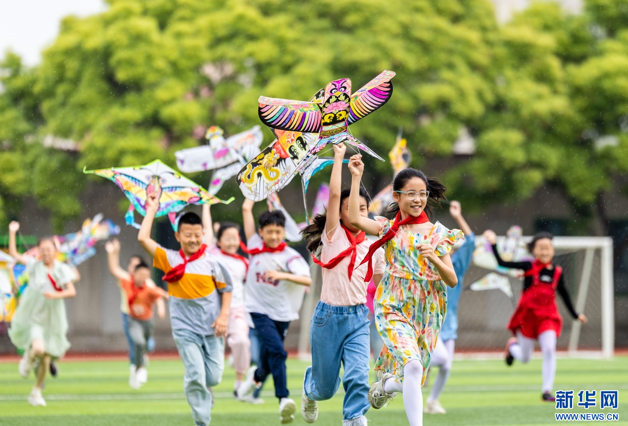 6月6日,呼和浩特市玉泉區(qū)五塔寺東街小學(xué)學(xué)生在“我們的節(jié)日·端午”主題活動(dòng)上放飛紙鳶。新華網(wǎng)發(fā)(丁根厚 攝)