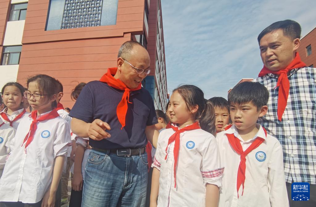 徐利民(中)參加“文化進校園”活動(資料照片)。新華社發(fā)