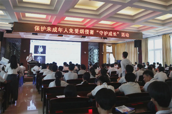 “同學(xué)們,你們知道你們都有什么權(quán)利嗎?”溫州市煙草專賣局“香溢”志愿者們走進(jìn)洞頭區(qū)實驗中學(xué)開展“法治宣傳進(jìn)校園”普法宣傳活動。
