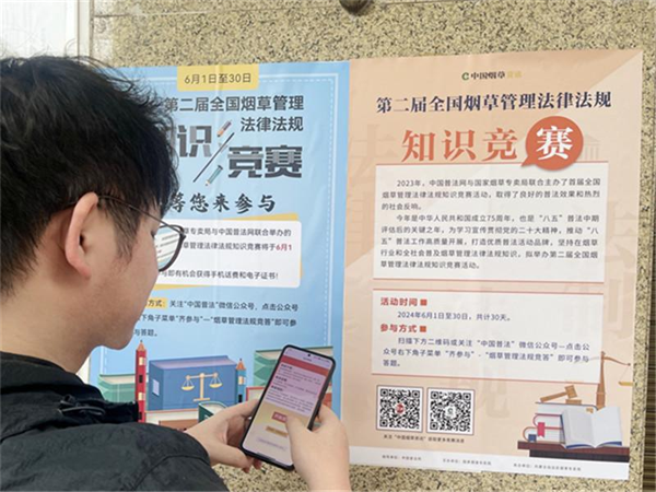 為推動“八五”普法走深走實,浙江省溫州市煙草專賣局以全國煙草管理法律法規(guī)知識競賽活動為契機,創(chuàng)新普法宣傳形式,打造員工、零售戶、消費者共同參與的立體化普法矩陣,持續(xù)提升普法“輻射面”,繪好普法“風(fēng)景線”,在全市掀起煙草專賣法律法規(guī)學(xué)習(xí)活動熱潮,助力營造全社會尊法學(xué)法守法用法的良好法治氛圍。
