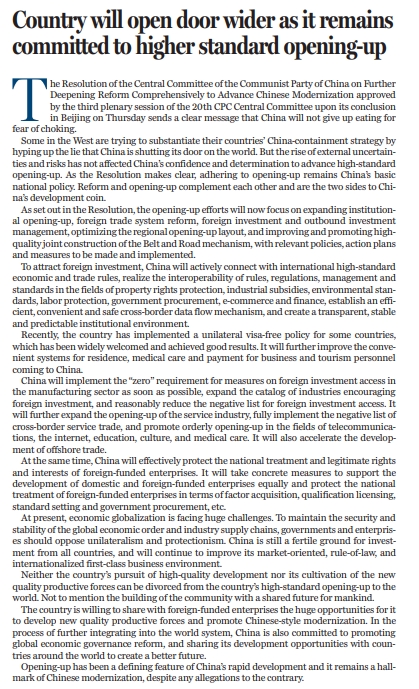 原標題:Country will open door wider as it remains committed to higher standard opening-up