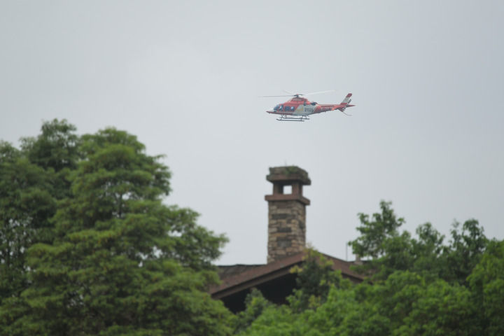 這是2024年6月20日在成都都江堰市青城山起降點拍攝的參與驗證飛行的載人直升機。新華社記者 胥冰潔 攝