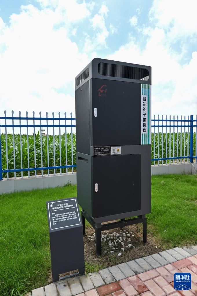 這是河南省新鄉(xiāng)市平原示范區(qū)高標(biāo)準(zhǔn)農(nóng)田六情預(yù)警監(jiān)測(cè)站內(nèi)的智能物聯(lián)網(wǎng)植物病菌孢子捕捉系統(tǒng)(7月29日攝)。新華社記者 李鑫 攝
