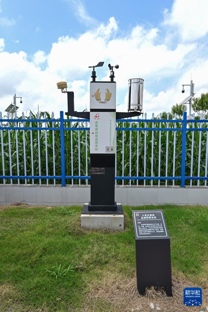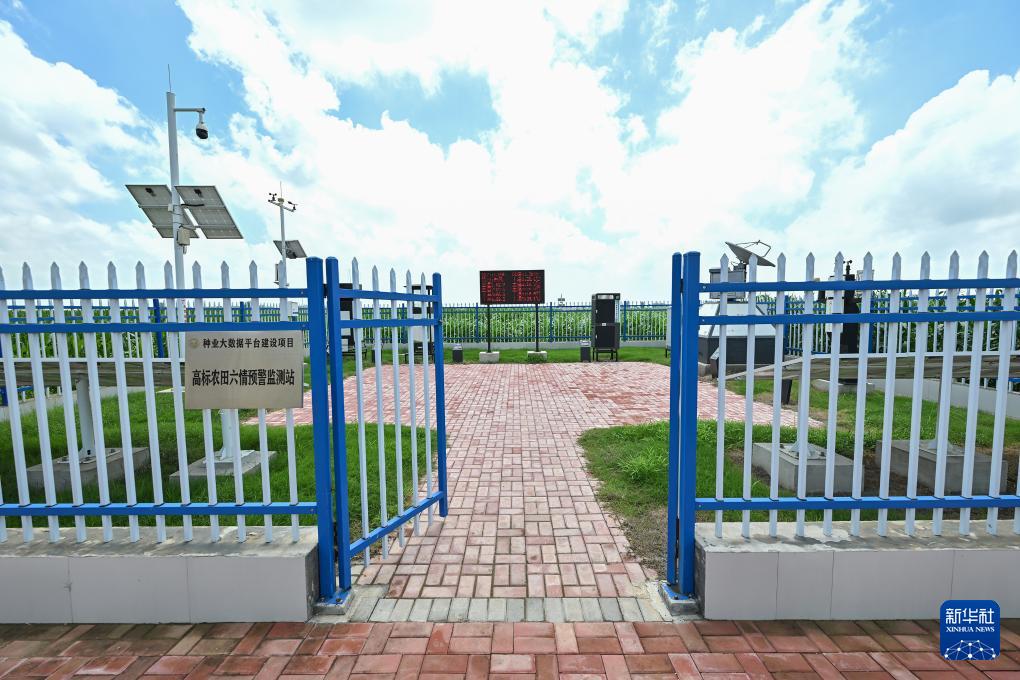 這是河南省新鄉(xiāng)市平原示范區(qū)高標(biāo)準(zhǔn)農(nóng)田里的六情預(yù)警監(jiān)測(cè)站(7月29日攝)。監(jiān)測(cè)站實(shí)時(shí)監(jiān)測(cè)苗情、災(zāi)情、病情、蟲情、墑情和肥情。新華社記者 李鑫 攝