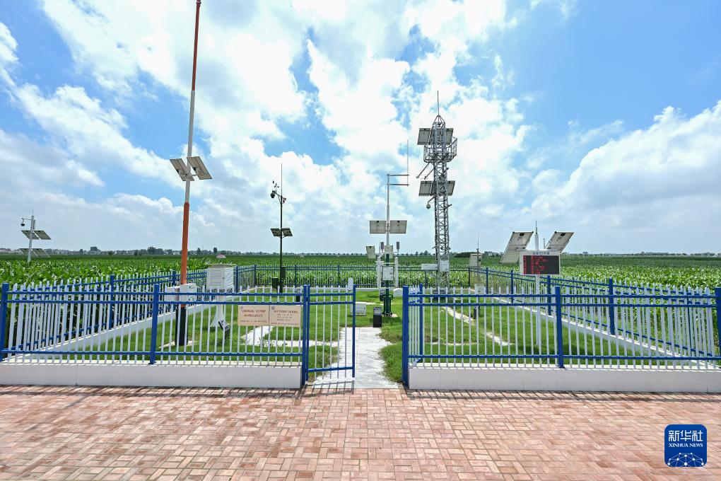 這是河南省新鄉(xiāng)市平原示范區(qū)高標(biāo)準(zhǔn)農(nóng)田里的氣象觀測(cè)站(7月29日攝)。新華社記者 李鑫 攝