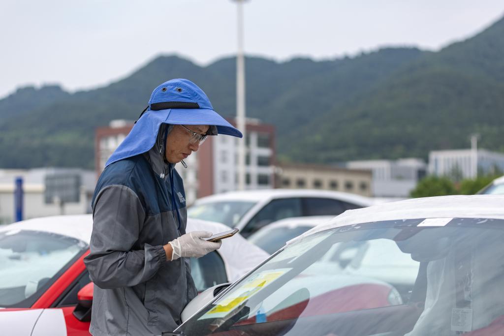 在重慶國際物流樞紐園區(qū),工作人員在重慶鐵路口岸對進口整車進行檢查。新華社記者 黃偉 攝