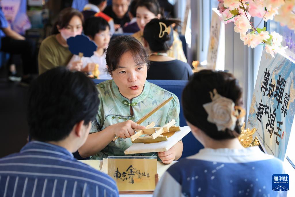 當(dāng)日,中國(guó)鐵路上海局集團(tuán)有限公司南京客運(yùn)段在G7393次和G132次高鐵列車上開(kāi)展“七夕寧相匯 文博敘匠心”主題活動(dòng)?;顒?dòng)中,來(lái)自南京多家文博場(chǎng)館的工作人員進(jìn)行傳統(tǒng)手工藝展示,并邀請(qǐng)旅客互動(dòng)體驗(yàn),讓旅客在旅途中感受傳統(tǒng)文化的魅力,迎接七夕節(jié)的到來(lái)。