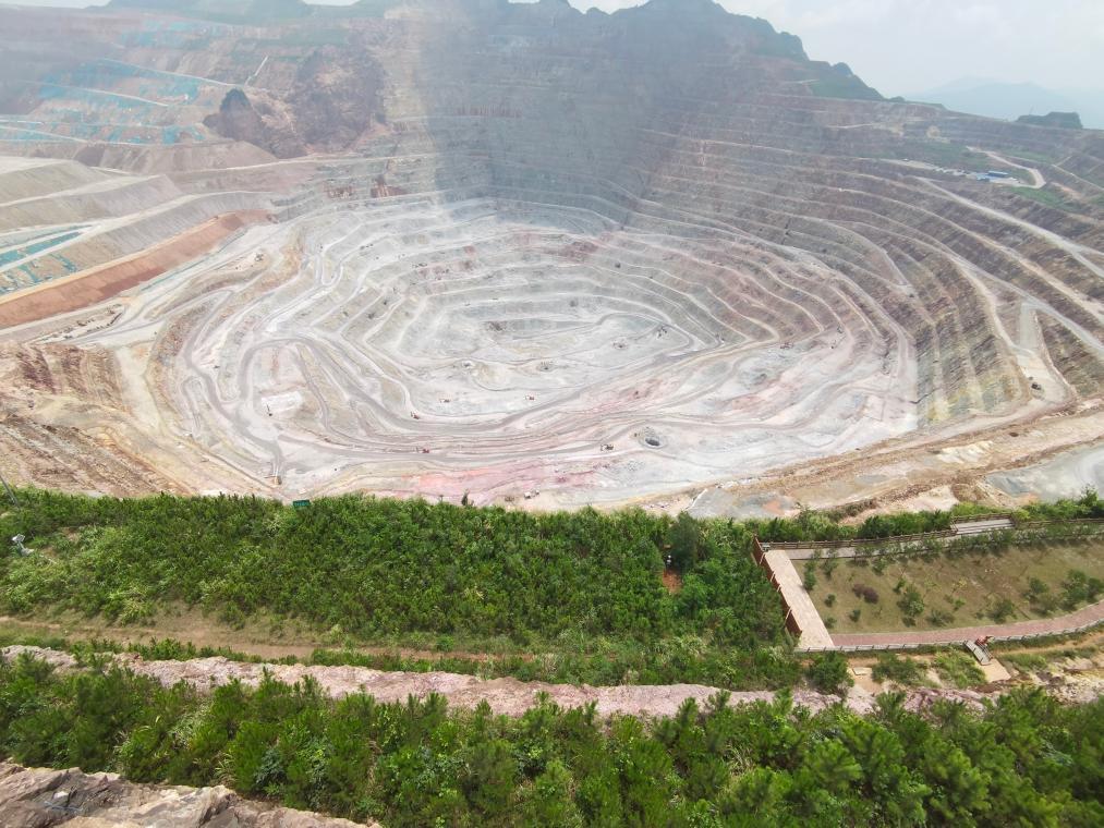 邊生產邊進行礦坑邊坡治理的紫金山金銅礦。新華社記者 秦宏 攝