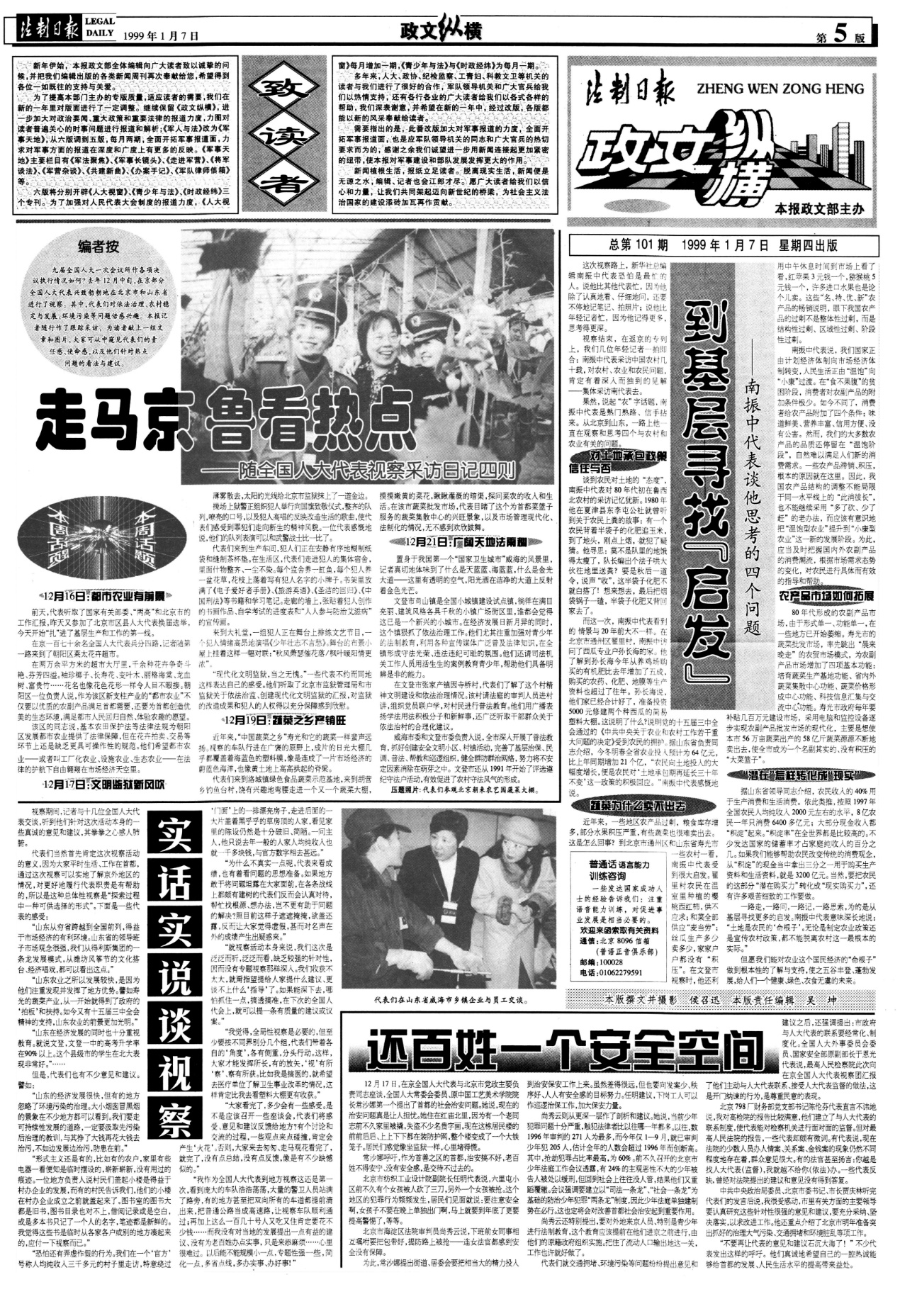1999年1月7日,《法制日?qǐng)?bào)》刊發(fā)《實(shí)話(huà)實(shí)說(shuō)談視察》等一組專(zhuān)題報(bào)道。