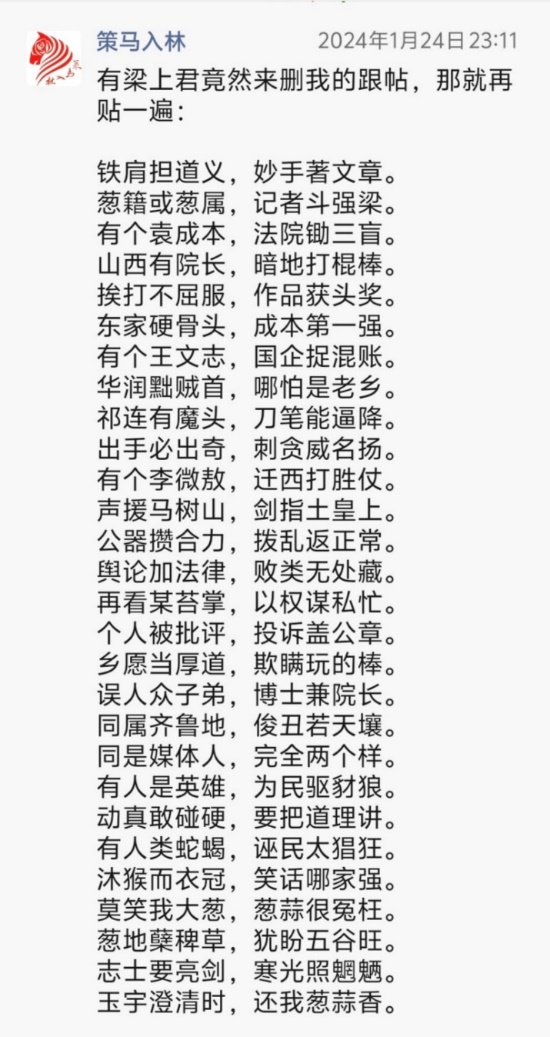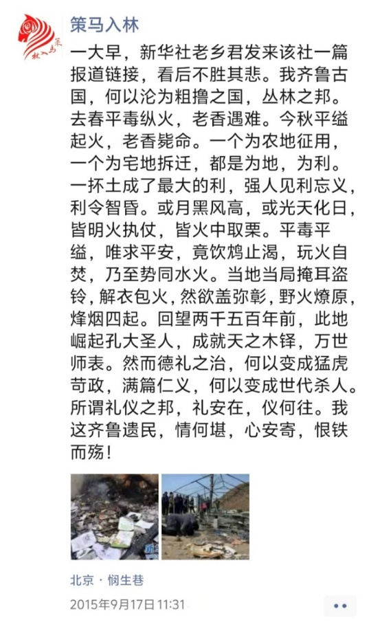 以上三帖,分別為天津8·12濱海新區(qū)爆炸事故“頭七”、山東平度平邑發(fā)生傷民案件、聲援鐵肩擔(dān)道義記者等所發(fā)。多年來(lái),一些案事件頻頻發(fā)生,源于當(dāng)事地方或部門(mén)瀆職不作為或?yàn)E權(quán)亂作為,造成嚴(yán)重后果,令人觸目驚心。正氣感召,責(zé)無(wú)旁貸,匕首投槍?zhuān)矣诙窢?zhēng)。