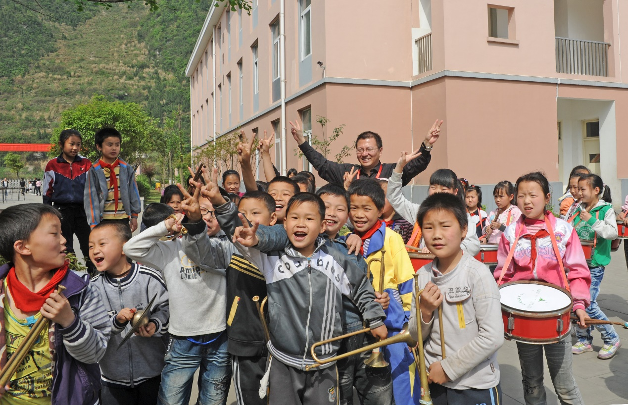 2011年4月,參加第四屆全國專家博客筆會,采訪四川災(zāi)后重建成果時與孩子們在一起。