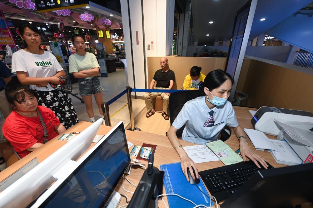 杭州市臨安區(qū)審管辦設置在一家超市里的便民服務站辦理市民卡、社保等業(yè)務。新華社記者徐昱 攝