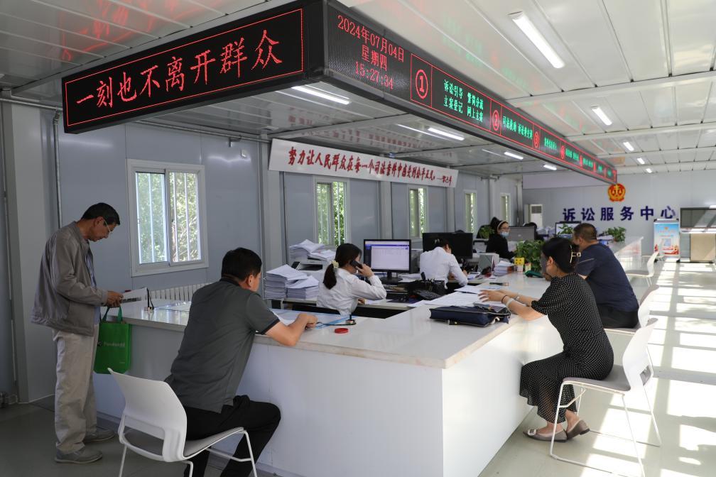 7月4日,群眾在慶陽市西峰區(qū)人民法院訴訟服務(wù)中心辦理訴訟事項(xiàng)。新華社記者梁軍 攝