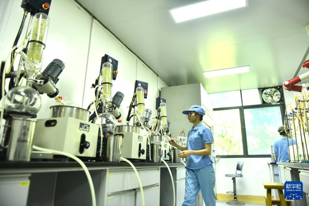 在廣西仙草堂制藥有限責(zé)任公司,技術(shù)人員在檢測青蒿原料(8月27日攝)。