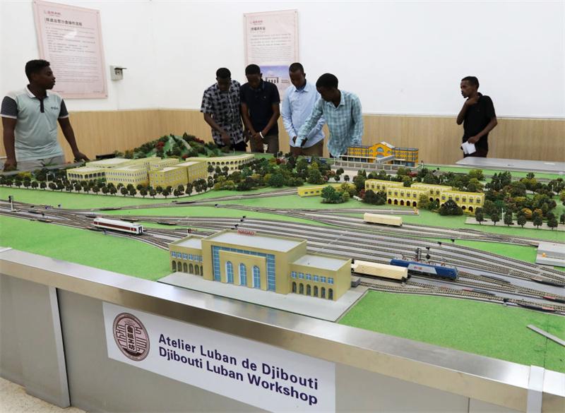 2022年9月19日,在位于吉布提首都吉布提市的吉布提工商學(xué)校,學(xué)生在魯班工坊鐵道運營沙盤教學(xué)區(qū)學(xué)習(xí)。新華社記者 董江輝 攝