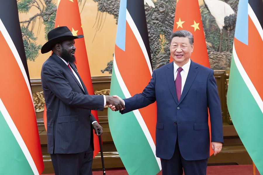 9月6日晚,國(guó)家主席習(xí)近平在北京人民大會(huì)堂會(huì)見(jiàn)來(lái)華出席中非合作論壇北京峰會(huì)的南蘇丹總統(tǒng)基爾。