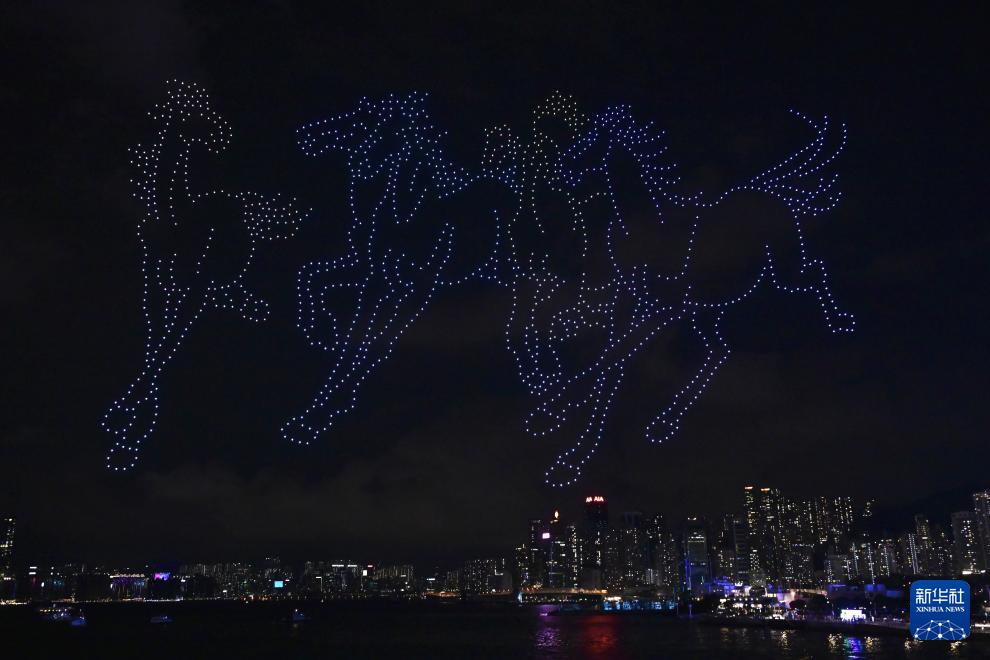 9月28日,香港舉辦“香港馬騰盛世”無人機表演,迎接國慶節(jié)的到來。
