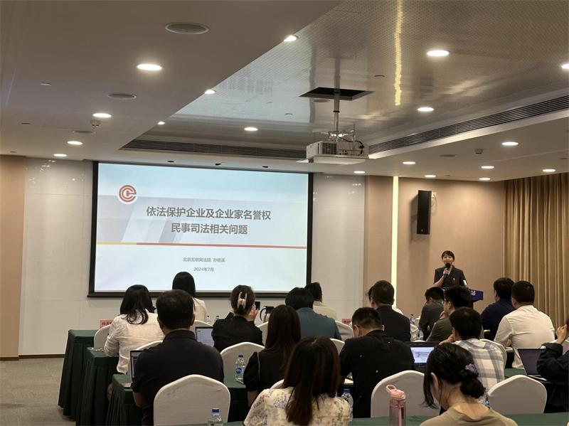 活動現(xiàn)場,北京互聯(lián)網(wǎng)法院審判委員會專職委員,三級高級法官孫銘溪圍繞企業(yè)名譽權(quán)、企業(yè)合規(guī)經(jīng)營等內(nèi)容,以案釋法、普法宣講。北京市委網(wǎng)信辦網(wǎng)絡(luò)輿情和舉報中心工作人員著重從涉企網(wǎng)絡(luò)侵權(quán)信息的舉報渠道選擇、舉報信息分類、舉報材料組織及相關(guān)注意事項等方面提出建議。