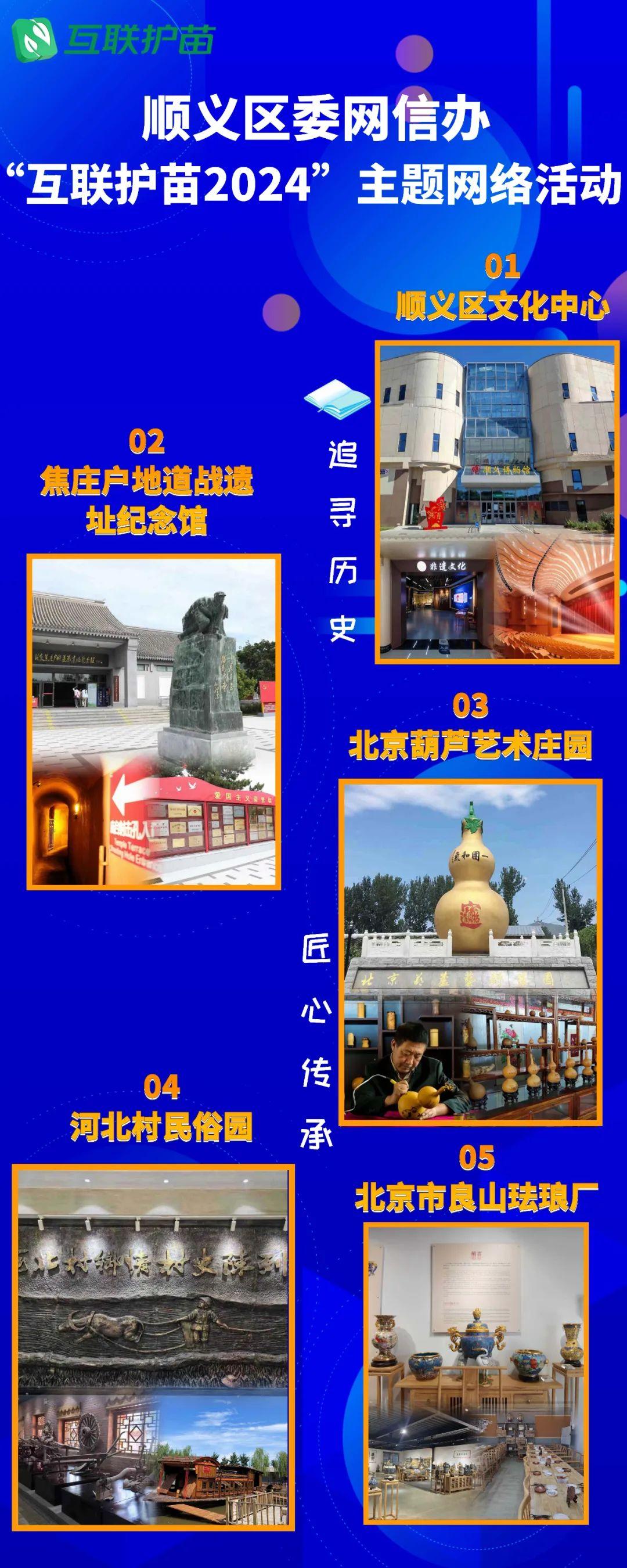 聯(lián)合區(qū)文旅局推出“追尋歷史,匠心傳承”研學路線(納入市級6條推廣線路之一),設置順義區(qū)文化中心、焦莊戶地道戰(zhàn)遺址紀念館、北京葫蘆藝術莊園、河北村民俗園、北京市良山琺瑯廠,共五個點位,學生可通過現(xiàn)場打卡、游歷體驗等開展非遺、愛國主義教育等社會實踐活動,并已通過高德、百度、美團進行線上發(fā)布。