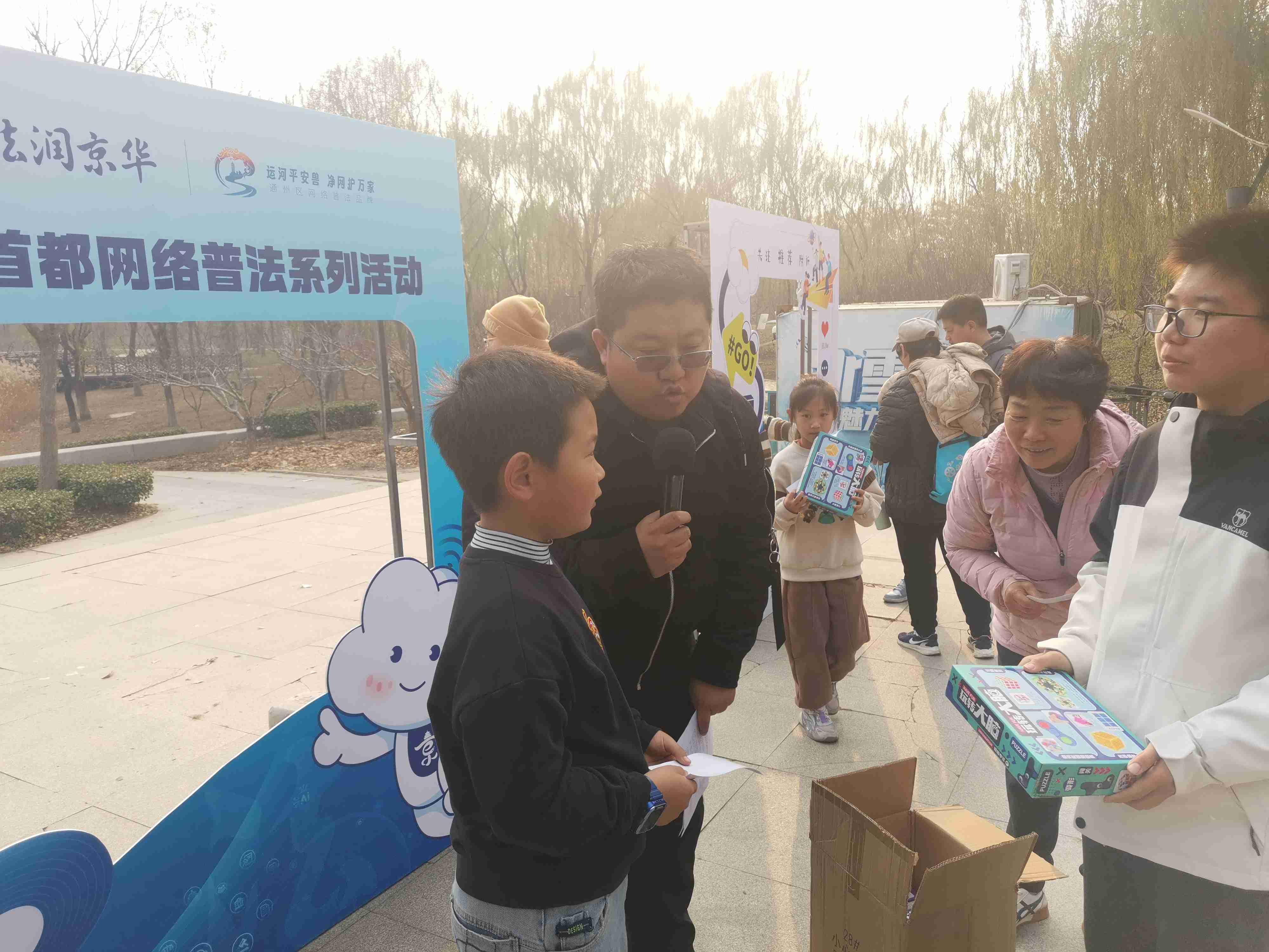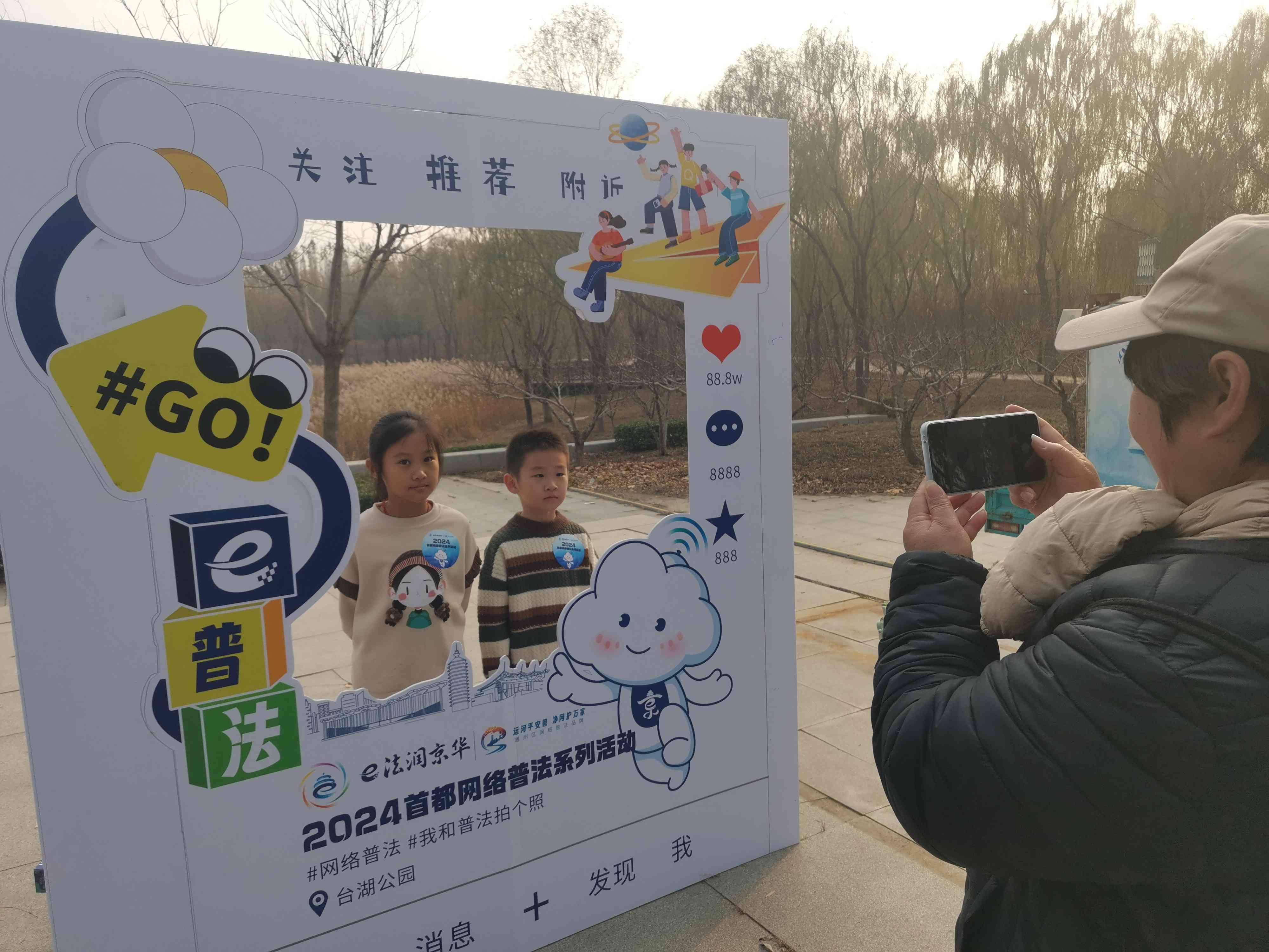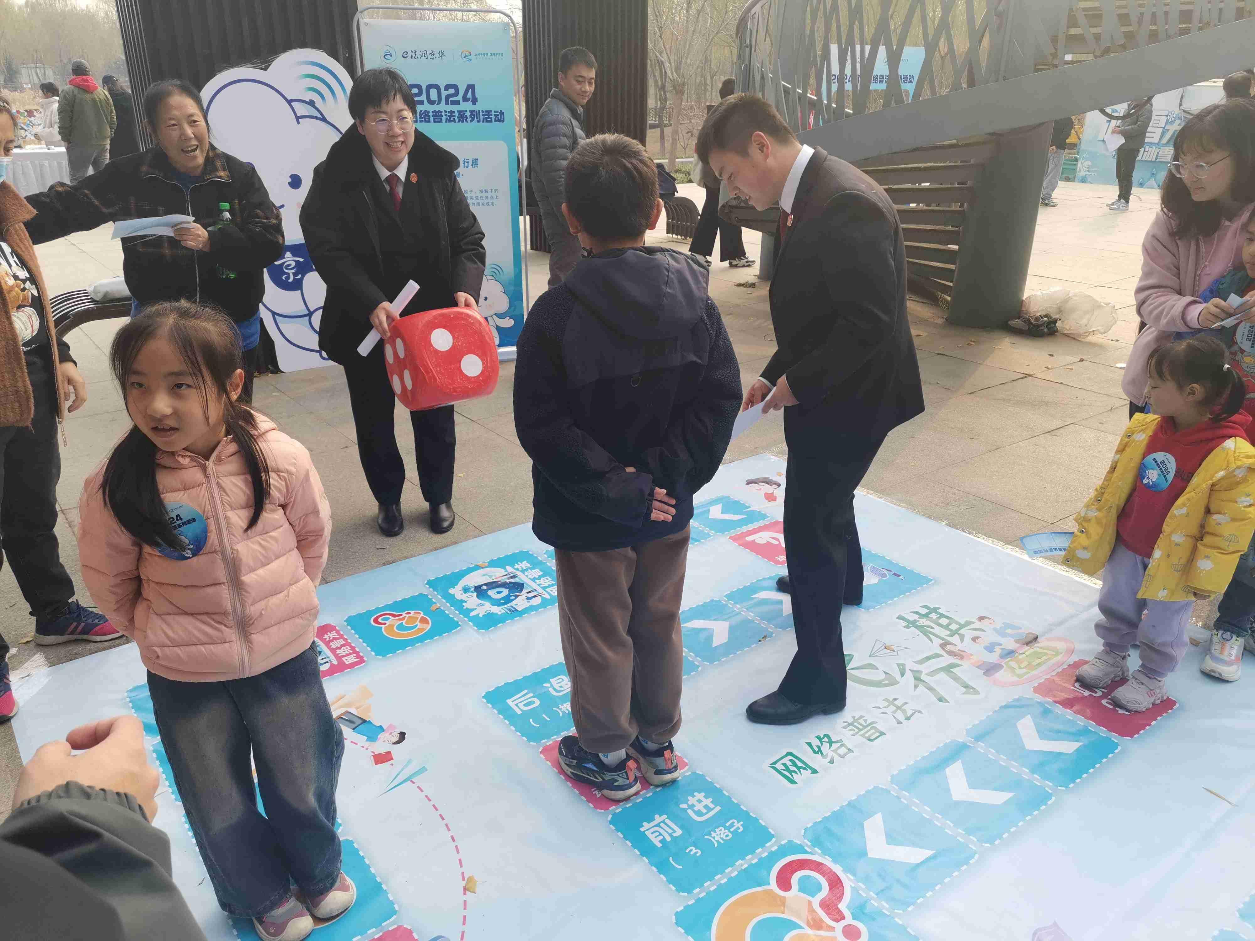 猜謎語、繪圖畫、拼拼圖、玩游戲……11月9日下午,北京市通州區(qū)臺(tái)湖公園內(nèi)人聲鼎沸、熱鬧非凡,由北京市委網(wǎng)信辦主辦,通州區(qū)委網(wǎng)信辦承辦,通州區(qū)人民法院、通州區(qū)人民檢察院、通州區(qū)教委以及臺(tái)湖鎮(zhèn)人民政府協(xié)辦的“e法潤京華·運(yùn)河平安獸 護(hù)網(wǎng)凈萬家”網(wǎng)絡(luò)普法游園會(huì)正如火如荼地進(jìn)行。記者在現(xiàn)場看到,人們駐足觀看普法短劇并爭相和劇中的小主人公合影、在普法展板前聽檢察官以案講法、在網(wǎng)絡(luò)普法像框墻前打卡留念,在手繪布上畫下對網(wǎng)絡(luò)安全和文明上網(wǎng)的理解與期盼。而現(xiàn)場設(shè)置的網(wǎng)絡(luò)普法猜猜猜、普法拼圖大挑戰(zhàn)、網(wǎng)絡(luò)普法飛行棋等闖關(guān)游戲更是引起眾多小朋友的興趣和熱情,每個(gè)游戲區(qū)前都排起了長隊(duì),在歡聲笑語中,針對未成年人的網(wǎng)絡(luò)保護(hù)知識也在孩子們心中扎根發(fā)芽。