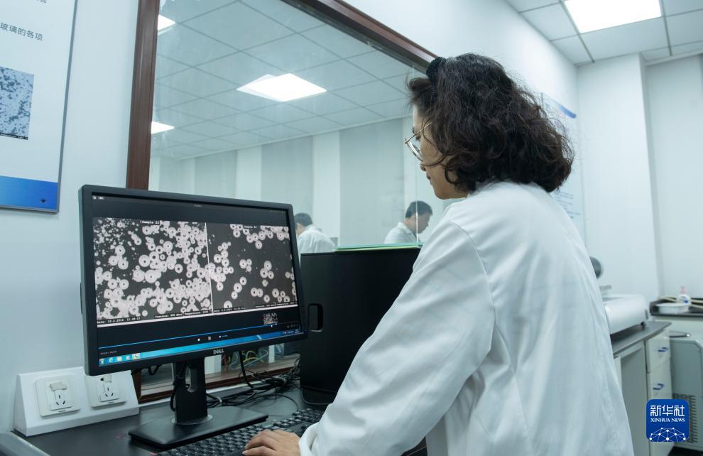 研究人員在浮法玻璃新技術(shù)國家重點實驗室查看玻璃熔化過程視頻(11月8日攝)。