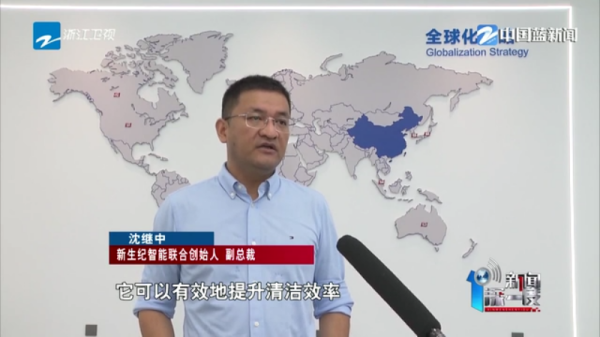 新生紀(jì)智能聯(lián)合創(chuàng)始人、副總裁 沈繼中:擁有非常強(qiáng)大的AI系統(tǒng),相對于傳統(tǒng)的清潔機(jī)器人,它可以有效地提升清潔效率,大概能夠提升10倍左右。