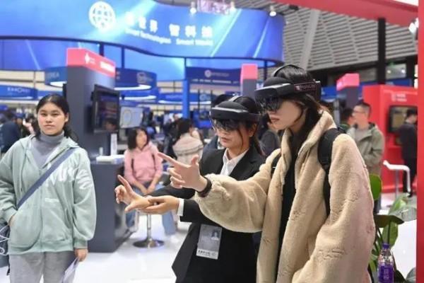 2024年世界互聯(lián)網(wǎng)大會“互聯(lián)網(wǎng)之光”博覽會上,觀眾在工作人員的指導(dǎo)下體驗(yàn)操作一款全息智能醫(yī)學(xué)影像系統(tǒng)。