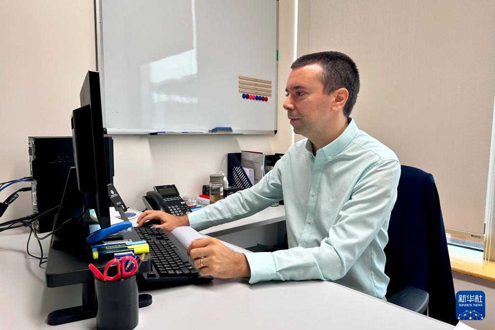 2024年11月21日,澳門(mén)城市大學(xué)葡語(yǔ)國(guó)家研究院的助理教授、來(lái)自葡萄牙的若昂·西蒙斯(中文名朱奧)在辦工室工作。新華社記者 王露 攝
