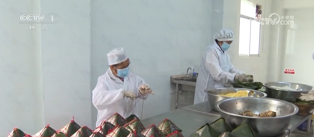在廣西賓陽,各年貨加工廠抓緊時間制作“甘棠三寶”,也就是大粽、扣肉和粉利。將蒸過的粽葉擺放好,按順序加入餡料,壓實包好后,再一起放入大鍋中進行熬煮,這就是大粽。將精選的五花腩肉及相關(guān)配料進行腌制、油炸,這就是扣肉。蒸熟的粉利切塊,淋上花生油和醬油,加一勺酸辣醬就可享用。