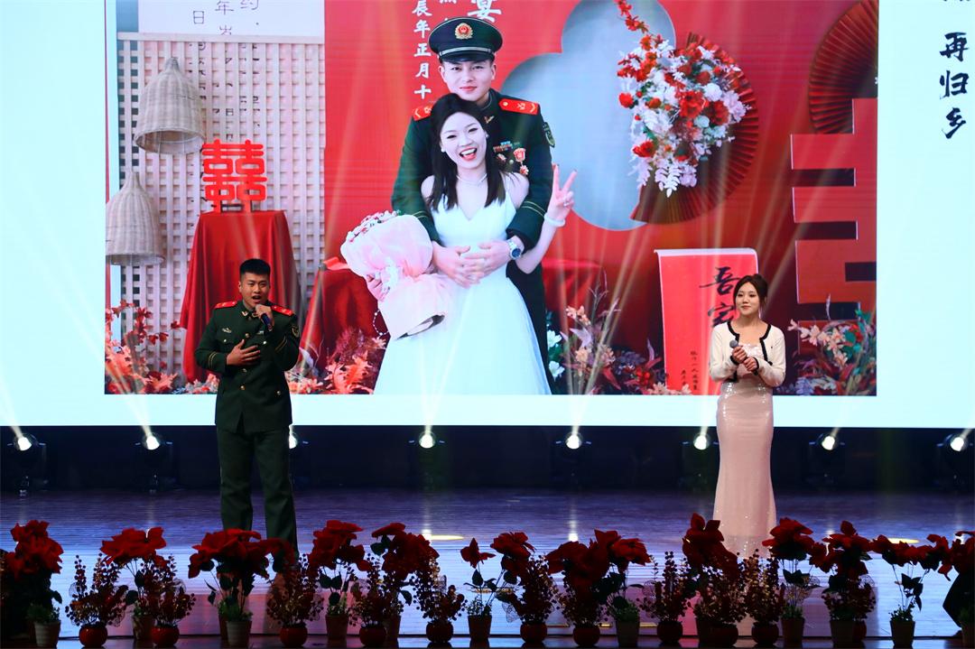 改編歌曲《婚約》呈現(xiàn)單位集體婚禮暖兵事。陳春越 攝