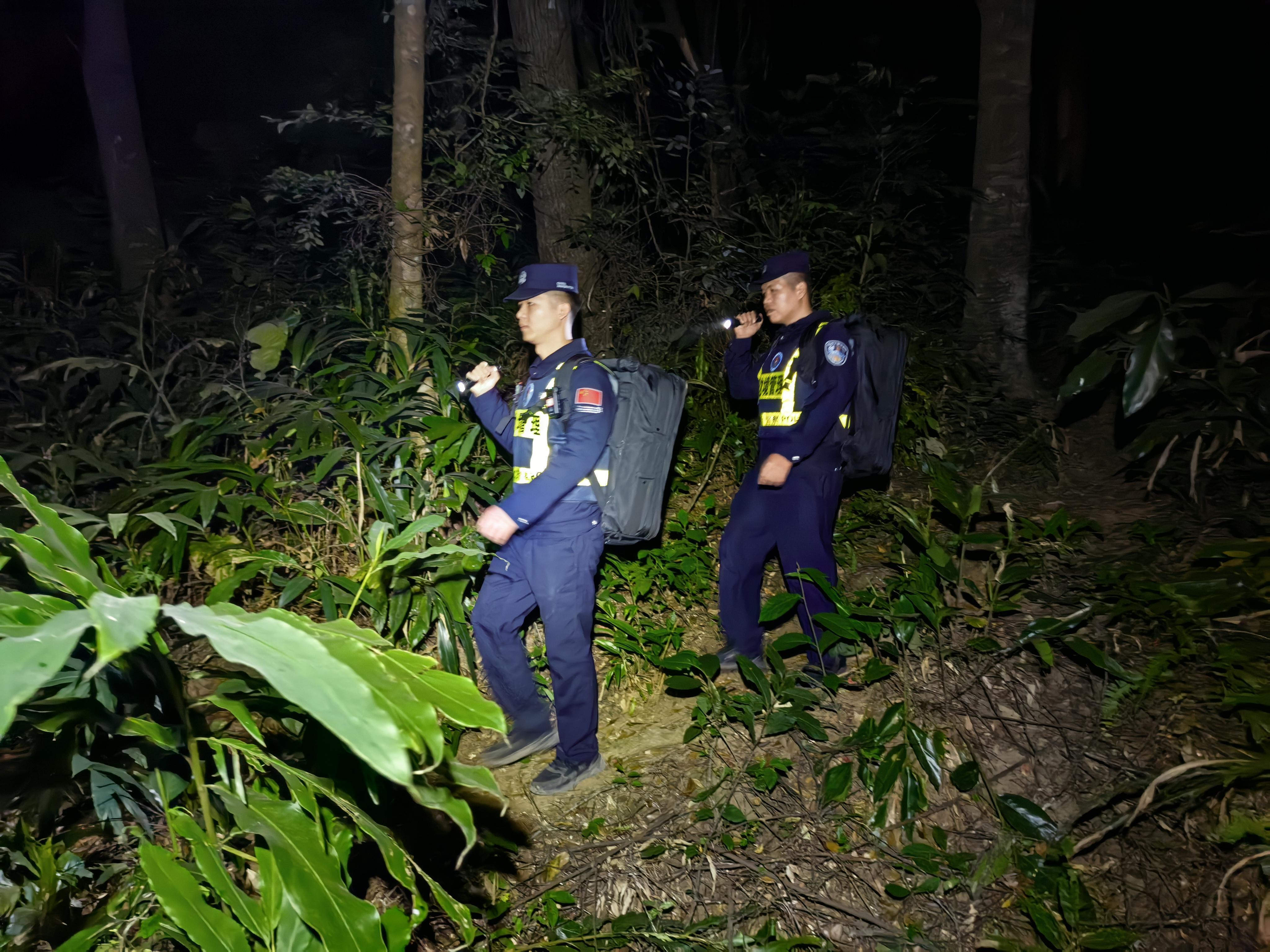 去年12月11日深夜,大青山警務(wù)室獲悉一條重要工作信息,一伙偷渡分子企圖從大青山附近偷渡出境。傅彬和同事莫璧成立即在重要路段設(shè)卡攔截,雖然發(fā)現(xiàn)目標(biāo)車輛但車內(nèi)并無其他人員。民警根據(jù)工作經(jīng)驗(yàn)判斷,該車可能已讓可疑人員下車離開。隨即,莫璧成立即聯(lián)系護(hù)邊員、網(wǎng)格員等群眾力量對附近區(qū)域進(jìn)行搜索。