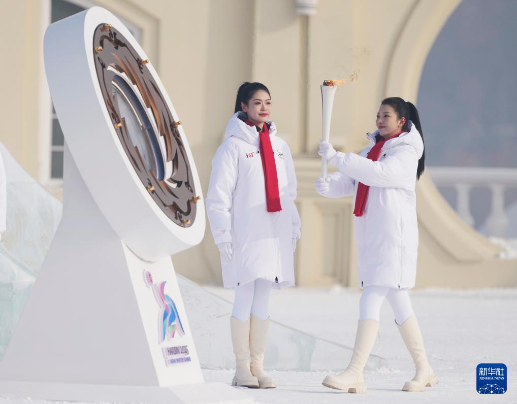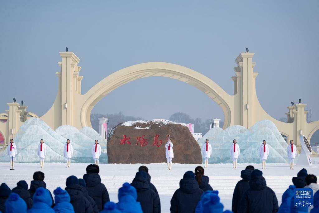 這是1月20日拍攝的太陽島風景區(qū)舉行的2025年第九屆亞洲冬季運動會火種采集儀式現(xiàn)場。新華社記者 王松 攝