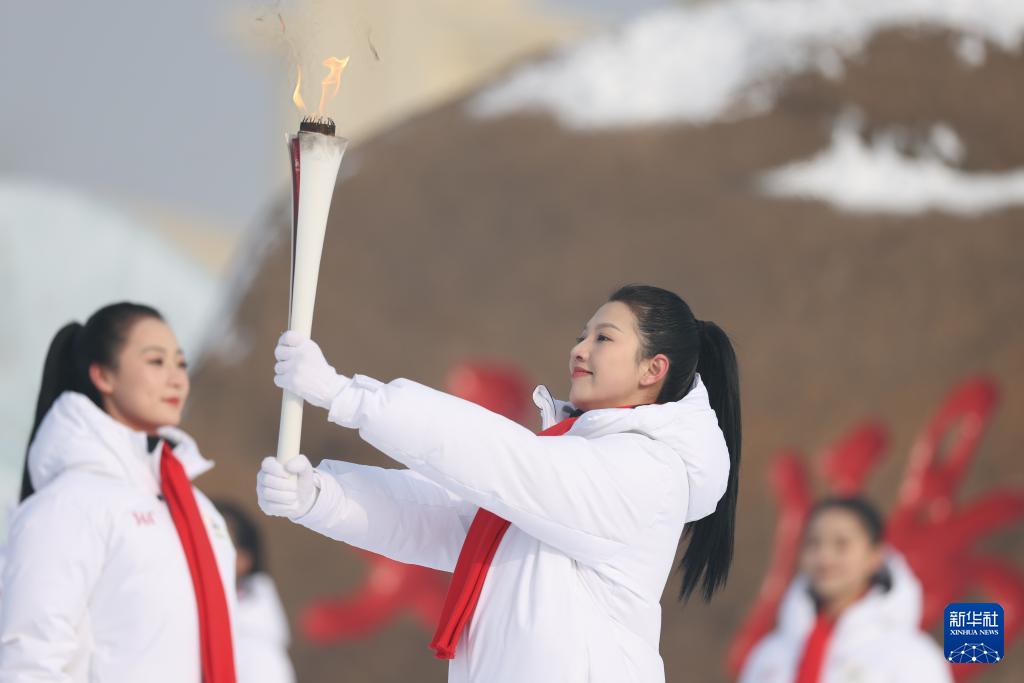 11時14分許,火炬點燃,火光躍動。本屆亞冬會火炬主題為“澎湃”,高約735毫米。整體造型似綻放的丁香花,采用中國紅、丁香紫、冰雪白等色彩,兼具中國古典與現(xiàn)代藝術(shù)相結(jié)合的美感。