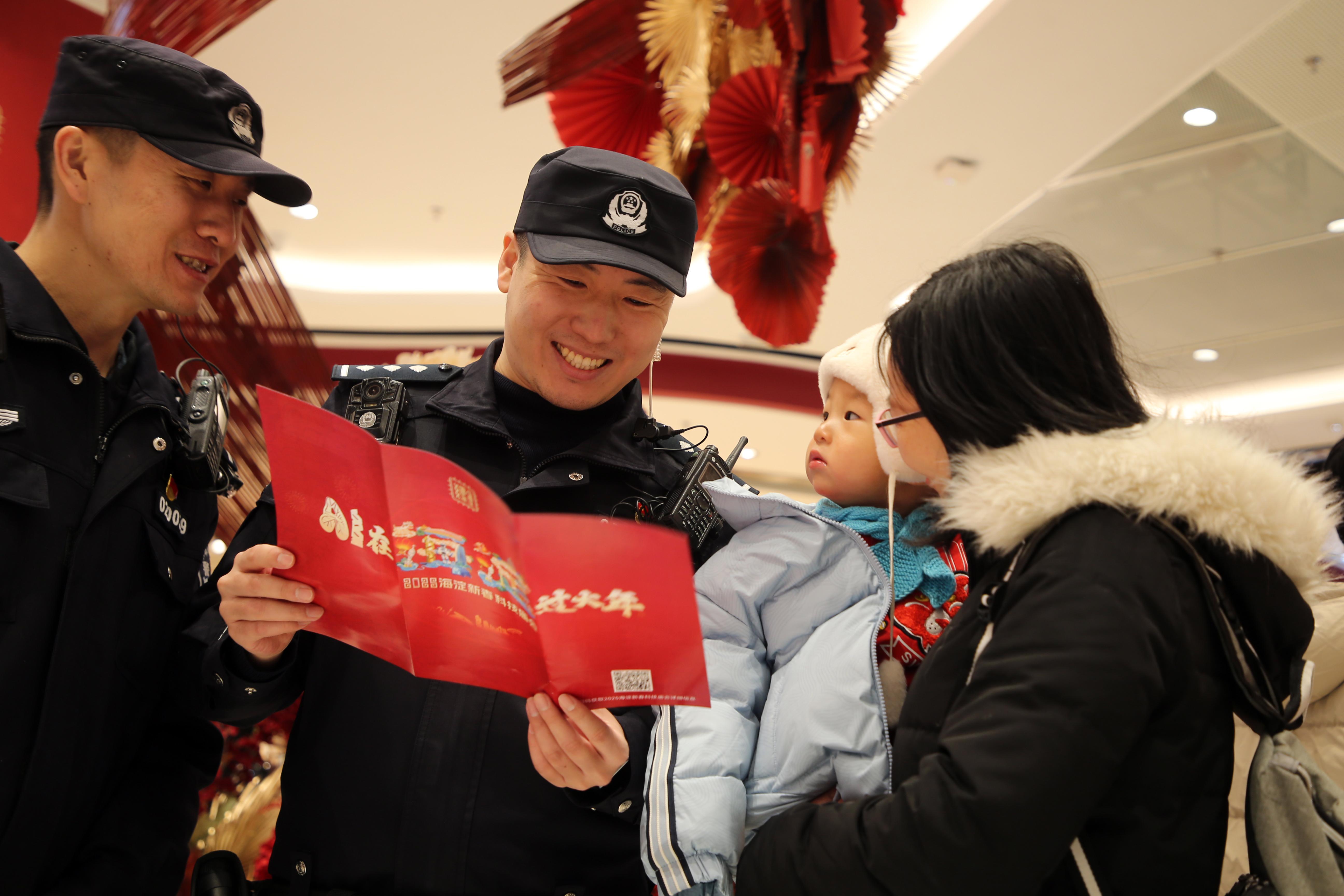 在五棵松萬達廣場,北京首個以AI為主題的“AI在海淀過大年”海淀新春科技廟會給群眾帶來不一樣的新春體驗。海淀公安分局高校內保支隊副支隊長鄂東奇介紹,這里匯聚了50余家企業(yè)的70多個AI應用場景,各種吸睛科技引來大量游客駐足。為確保這場特殊廟會的安全不出紕漏,分局提前著手,經過前期充分踏勘研討,在春節(jié)前精心組織了多場安保人員培訓,落實“一店多警”措施,在商場科學部署執(zhí)勤警力,不間斷開展巡邏守護,及時發(fā)現處置各類風險隱患。