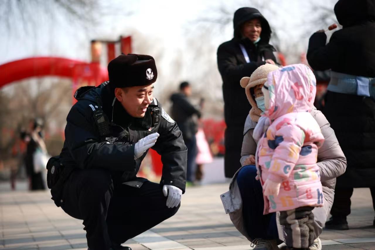 今年圓明園廟會將傳統(tǒng)年味、非遺文化、數字科技、冰雪運動集于一體,前來打卡的游客絡繹不絕,海淀民警時刻緊繃安全這根弦,為游客提供身邊的暖心服務。