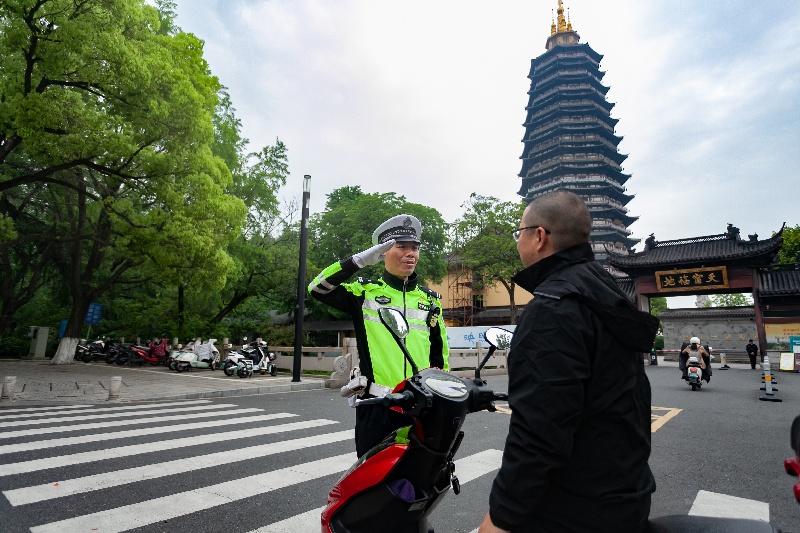 雖然戴著手套,但握著車把的粗礪手掌還是凍出了些裂口,稍微扯一扯就生疼。這是任傳棟參加常州天寧寶塔聽鐘聲迎新年安保任務(wù)的第十五個(gè)年頭,2009年工作后,每一個(gè)大年夜他都守在天寧寶塔邊的紅梅路上,15年來從不間斷。大年夜登天寧寶塔撞鐘祈福賞燈,已經(jīng)成了很多常州市民的“新年俗”,在紛至沓來卻秩序井然的車流人海背后,是常州交警數(shù)十年如一日?qǐng)?jiān)守崗位的守護(hù)。