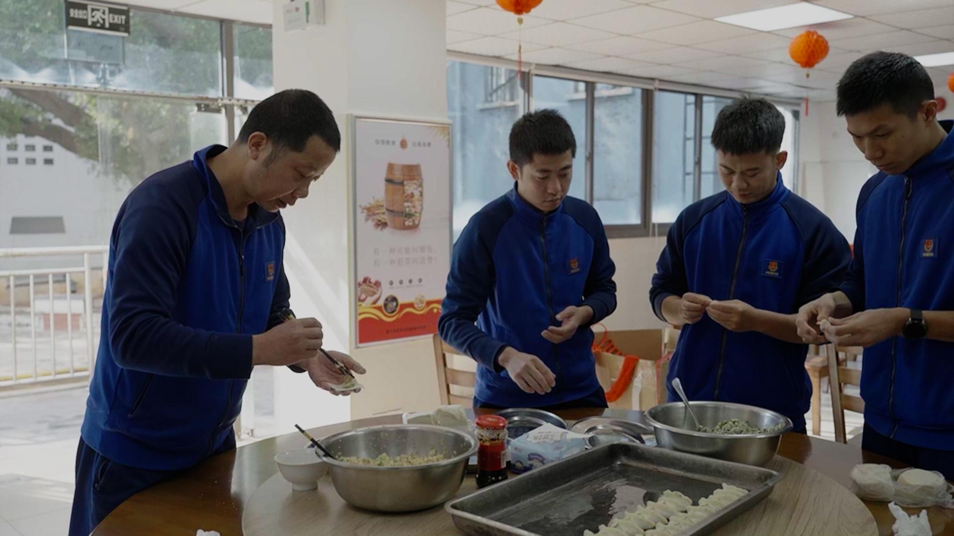 而在隊(duì)里過年,同樣也需要陳旭操持。休息時(shí),他安排大家一起包餃子。大家圍著一圈等著餃子出爐,剛一出鍋,就有人迫不及待地先要“嘗嘗味”。有的消防員還秀出自己的廚藝,整個(gè)食堂里歡聲笑語不斷,為緊張的備戰(zhàn)生活增添了幾分輕松和歡樂。