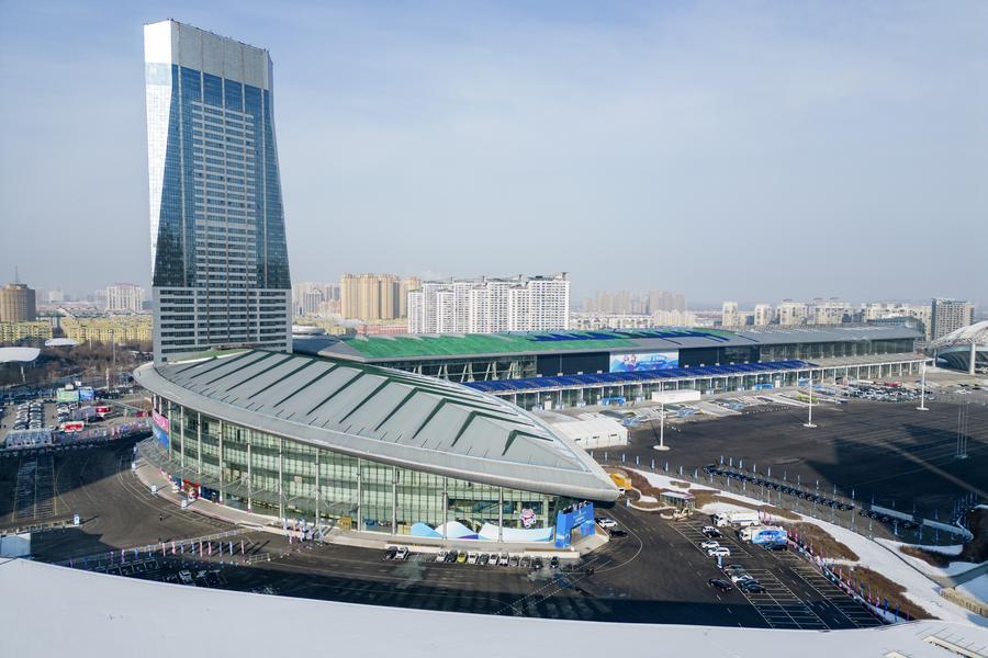 這是1月27日拍攝的哈爾濱國(guó)際會(huì)展體育中心(亞冬會(huì)開閉幕式場(chǎng)館)(無(wú)人機(jī)照片)。新華社記者 張濤 攝