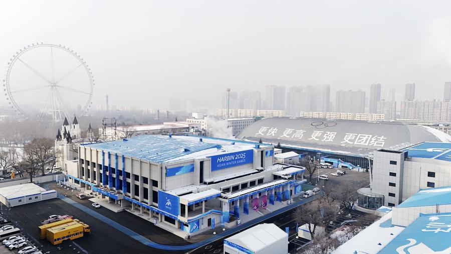 這是1月21日拍攝的黑龍江省冰上訓(xùn)練中心綜合館(短道速滑、花樣滑冰比賽場(chǎng)館)(無(wú)人機(jī)照片)。新華社記者 王松 攝