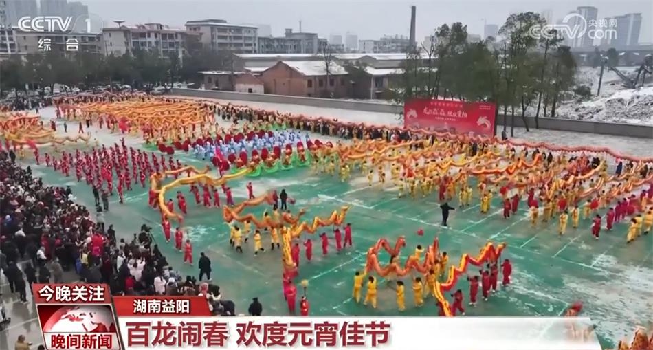 在湖南益陽(yáng),元宵節(jié)當(dāng)天,100條彩龍翻騰飛舞,不斷變換出各種造型,直接將節(jié)日的氛圍“拉滿”。伴著彩龍,各種地方戲曲精彩上演,市民群眾零距離感受傳統(tǒng)民俗的魅力。