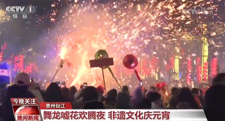 而在貴州省臺(tái)江縣,一場(chǎng)規(guī)模盛大的舞龍噓花在這里上演。舞龍噓花是元宵節(jié)苗族的習(xí)俗,也是我國(guó)非物質(zhì)文化遺產(chǎn)項(xiàng)目。舞龍隊(duì)員們赤膊上陣舞動(dòng)長(zhǎng)龍,周?chē)罕娪醚b滿火藥的噓花筒向龍身噴射焰火。在火光中,金龍上下翻騰,舞龍噓花也被稱為“勇敢者的游戲”。