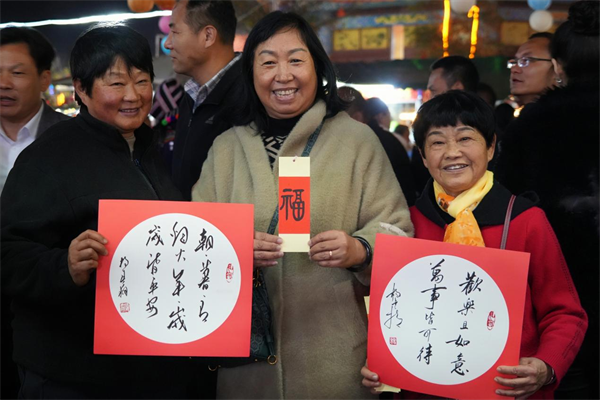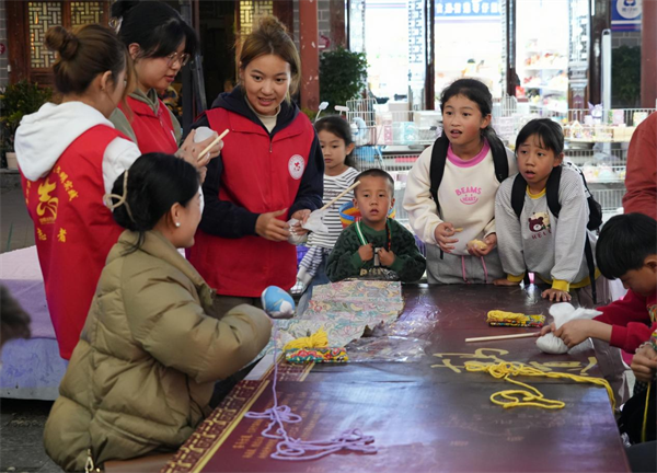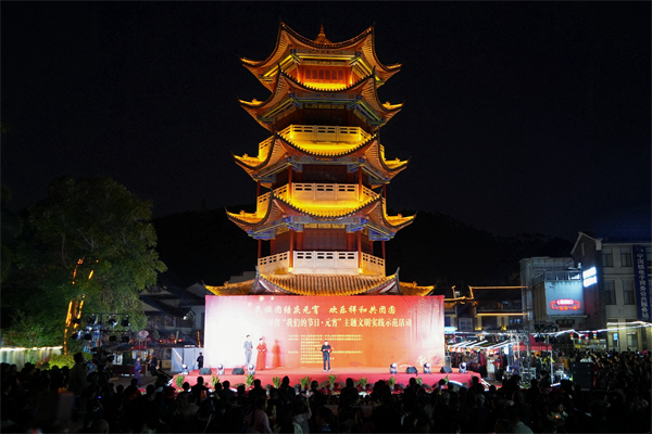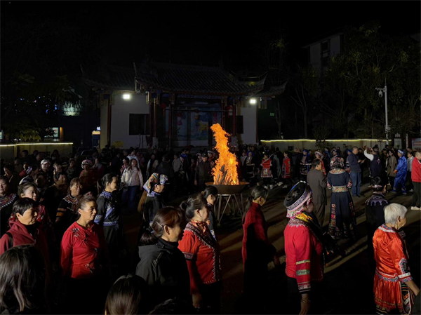在普洱古鎮(zhèn),豐富多樣的文明實(shí)踐活動(dòng)同步開(kāi)展,書(shū)法愛(ài)好者以筆為媒,飽蘸深情,精心書(shū)寫(xiě)并送上承載著“祝?!薄捌桨病薄敖】怠钡哪珜?。當(dāng)社會(huì)主義核心價(jià)值觀、傳統(tǒng)文化以及移風(fēng)易俗理念巧妙融入謎面時(shí),群眾穿梭于燈謎中,答得不亦樂(lè)乎。此外,燈籠制作、糖畫(huà)制作、烤茶、拓印、染紅蛋、舂粑粑等體驗(yàn)環(huán)節(jié)吸引了不少群眾駐足。現(xiàn)場(chǎng),各族群眾身著盛裝,手拉手圍著篝火跳舞,歡聲笑語(yǔ)賀佳節(jié),描繪出中華民族一家親的美好畫(huà)面,營(yíng)造歡樂(lè)祥和的節(jié)日氛圍。