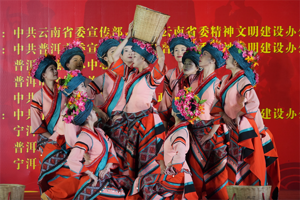 此次文化文藝活動(dòng)共分為“誓詞碑前,續(xù)寫(xiě)團(tuán)結(jié)”“普洱山下,茶香筑夢(mèng)”“錦繡普洱,文明新章”三大篇章。情景舞蹈《剽牛盟誓》重溫26個(gè)民族代表歃血盟誓、刻石為記,建立普洱民族團(tuán)結(jié)誓詞碑的歷史故事。伴隨著恢宏激昂的旋律、振奮人心的歌詞,歌曲《領(lǐng)航》響徹現(xiàn)場(chǎng),抒發(fā)出群眾愛(ài)黨愛(ài)國(guó)的真摯情感。在舞蹈《茶韻》中,采茶女背著茶簍跳躍而出,舞姿靈動(dòng);全國(guó)“新時(shí)代好少年”陶赫嬈帶來(lái)朗誦《鴻雁報(bào)春》……當(dāng)一碗碗熱騰騰的湯圓送到群眾手中,人們相互送上節(jié)日的祝福,傳遞溫暖。