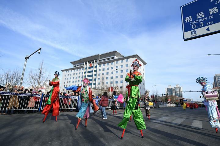 活動現(xiàn)場,鑼鼓喧天,龍騰獅舞,來自全區(qū)各街道精選的28支花會隊伍600余人身著彩服,各展所長。有新袁長利高蹺、大楊寶輦等市級非遺項目,有蘇莊清音法鼓、大楊長平高蹺等區(qū)級非遺項目,也有常年活躍在基層群眾舞臺的優(yōu)秀舞蹈隊、秧歌隊等。為廣大群眾奉獻(xiàn)了一場節(jié)日盛宴,營造了喜慶祥和、昂揚向上的節(jié)日氛圍,充分展示了民俗傳統(tǒng)文化的魅力。吸引現(xiàn)場觀眾駐足觀看,掌聲陣陣,喝彩連連。