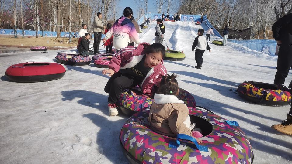 春節(jié)期間,孩子們?cè)谖红魪V場(chǎng)奇幻冰雪節(jié)游樂(lè)場(chǎng)游玩。魏縣縣委宣傳部供圖(王德峰 攝)